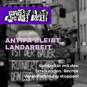 Antifaschismus ist mehr als nur gegen Nazis sein. Nazis sind ein Symptom des kapitalistischen Systems, welches bekämpft werden muss, aber im Vordergrund sollte der Kapitalismus und Klassenkampf stehen. Diese Kämpfe werden u.a. auf dem Land ausgetragen. Betrachten wir die zahlreichen Aufrufe von rechtsgerichteten Gruppen zum Streik, welche sonst für die AfD ihre Stimme erheben, dazu die AfD zum Thema Subventionskürzungen und wie die AfD politisch steht (in mehreren Bundesländern gesichert rechtsextrem).