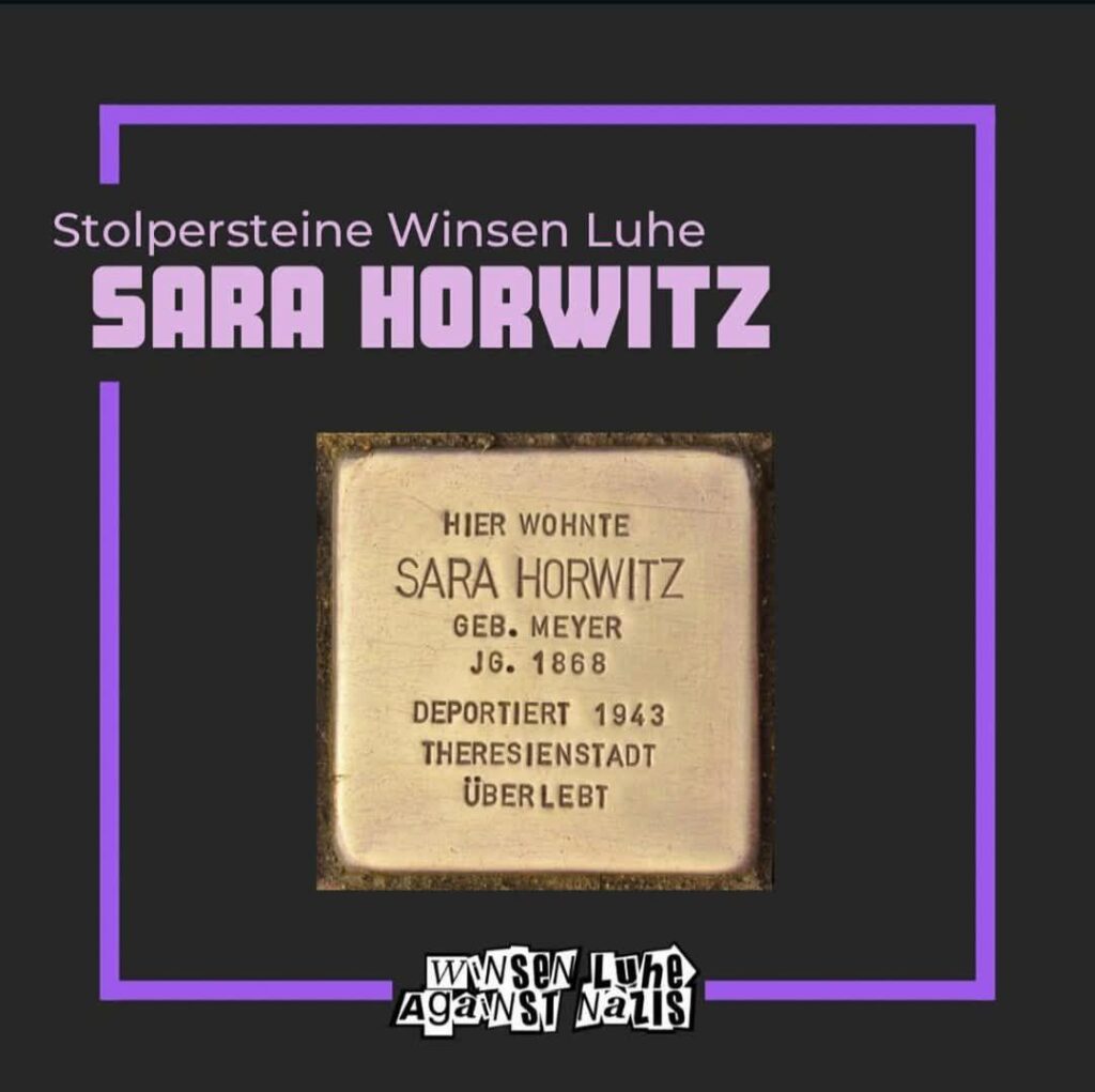 Sara Horwitz lebte, bis sie 1943 deportiert und nach Theresienstadt verschleppt wurde, im Winsen, an der Ecke Von-Somnitz-Ring/Rathausstraße.