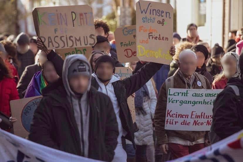 Wir stehen heute hier, weil wir einen gemeinsamen Feind haben. Einen Feind, welchen antifaschistische Gruppen schon seit Jahren anprangern & wir sind froh, das sie diesen erkannt haben. Wir sind froh dass wir heute hier sein dürfen um zusammen diesem Feind zu zeigen das Zusammenhalt der Gesellschaft und Solidarität eine Waffe gegen den Hass und die Hetze der AFD sind. Ich bin überaus froh darüber, das wir als antifaschistische Organisation zu dieser Demo eingeladen wurden und eine Rede halten dürfen, denn das ist in vielen Teilen Deutschlands leider immernoch nicht selbstverständlich. Das kommt daher das viele mit „der Antifa“ nichts zutun haben wollen und ich würde lügen wenn ich sage, ich könnte es nicht verstehen. Wenn die Menschen an Antifa denken, denken sie häufig an Krawalle zum 1.Mai, G20 oder auch Leipzig.